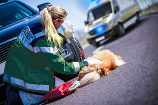Bleiben sie in der Nähe des verletzten Tieres/des Unfalles. Verletzte/Erkrankte Tiere können gefährlich reagieren, bitte halten Sie hier etwas Abstand.